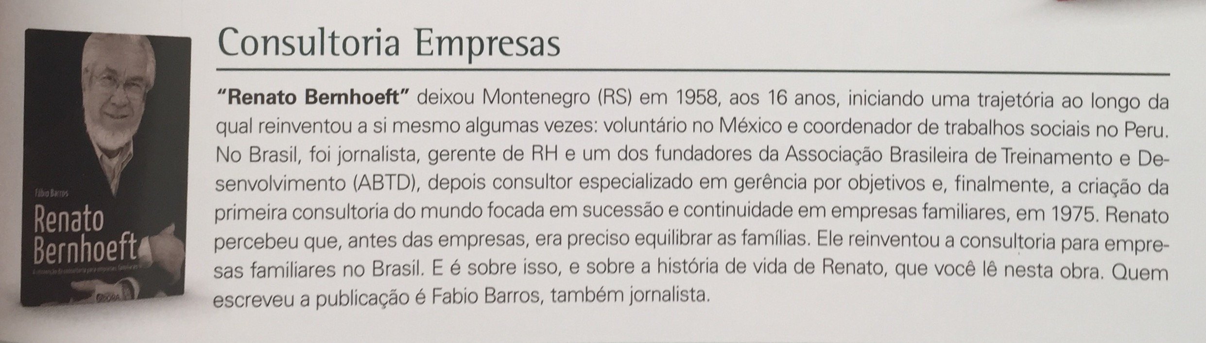 E o livro "Renato Bernhoeft - A reinvenção da consultoria para empresas familiares" foi destaque na seção Dicas de Livros da Advogados - Mercado & Negócios. Confira na edição 53 da revista....